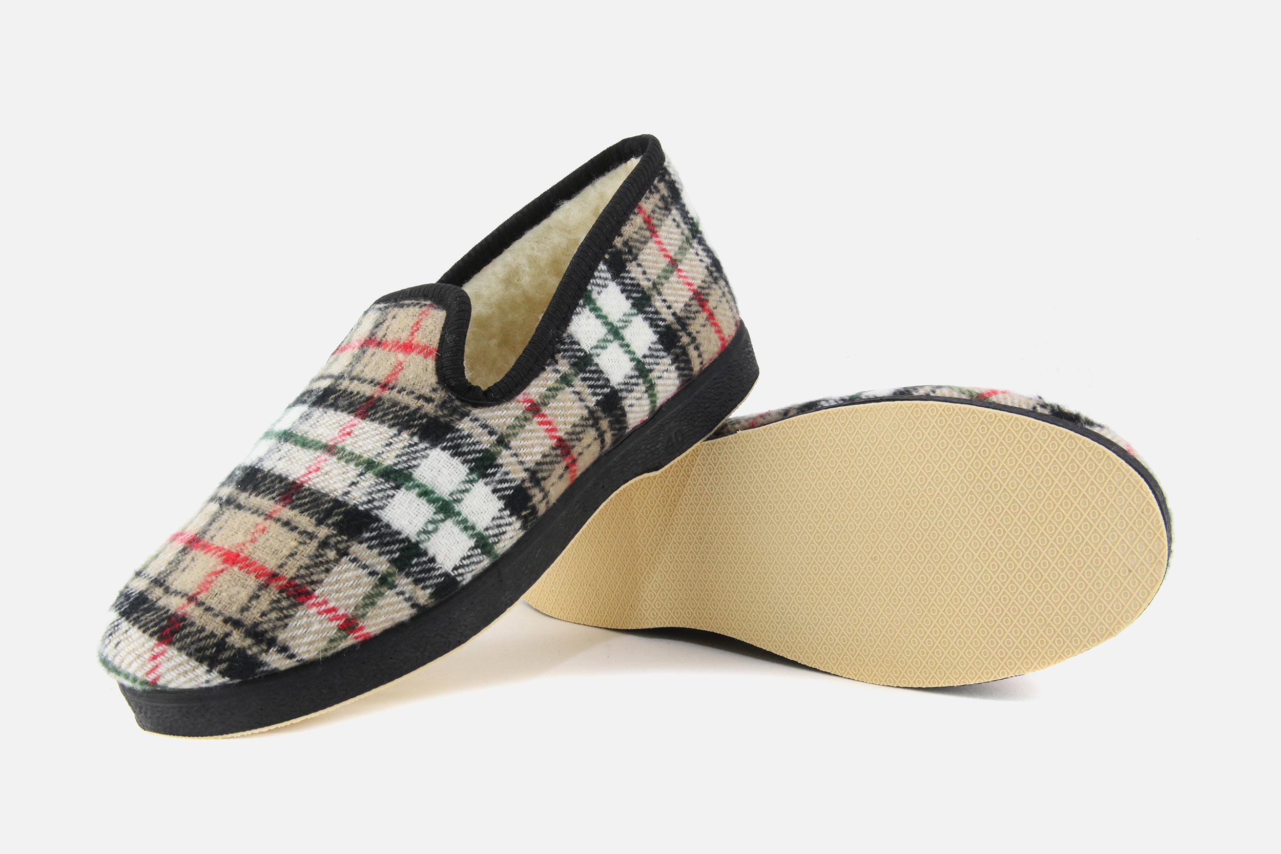 Chaussons bas Semelflex beiges en textile laine
