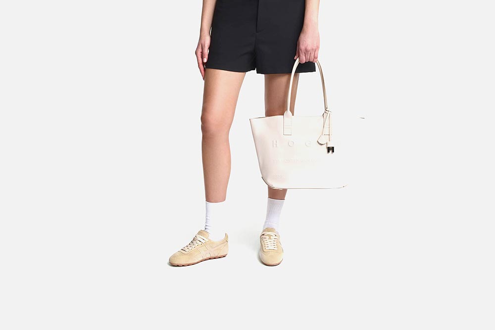 Créée en 1986, la chaussure Hogan se distingue, outre ses détails soignés, par le H emblématique qui apparaît sur ses lignes de sneakers urbaines et chic.