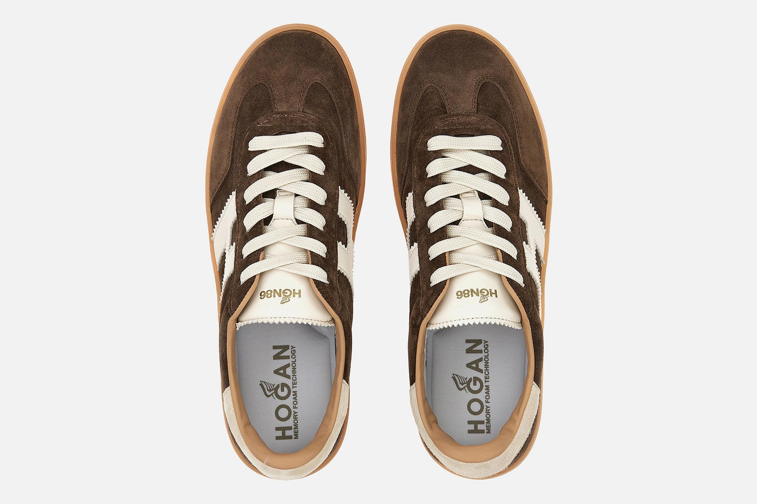 Créée en 1986, la chaussure Hogan se distingue, outre ses détails soignés, par le H emblématique qui apparaît sur ses lignes de sneakers urbaines et chic.