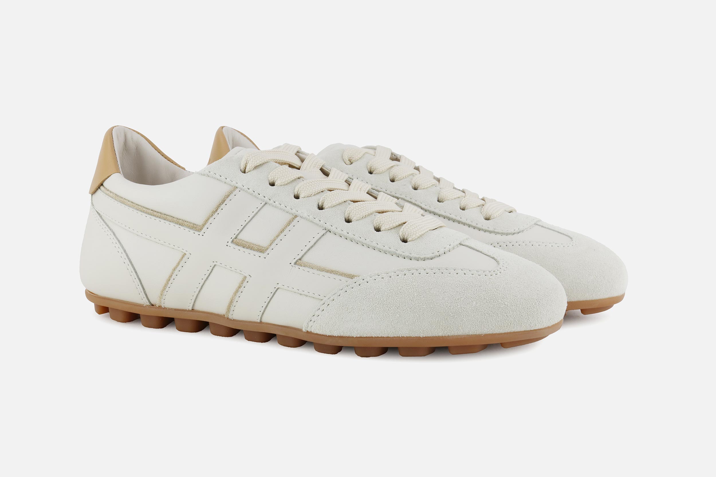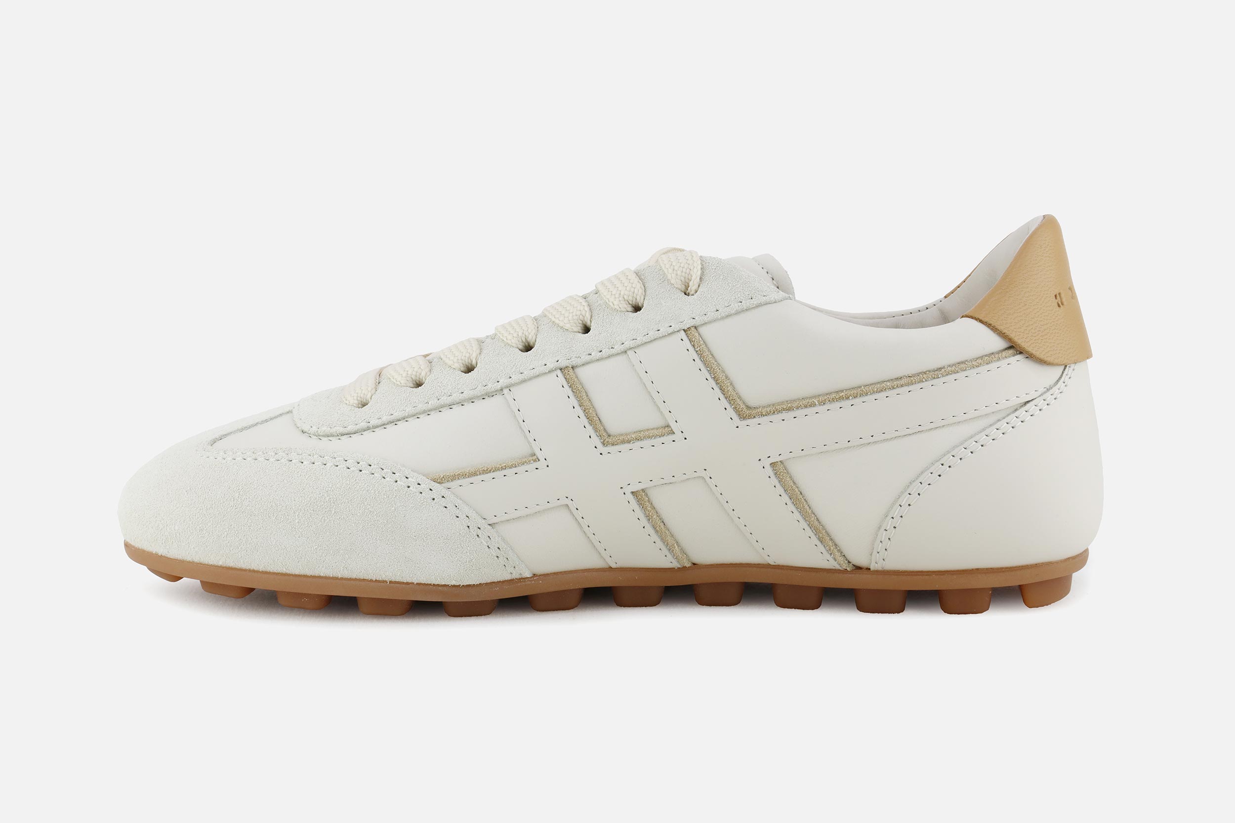 Créée en 1986, la chaussure Hogan se distingue, outre ses détails soignés, par le H emblématique qui apparaît sur ses lignes de sneakers urbaines et chic.