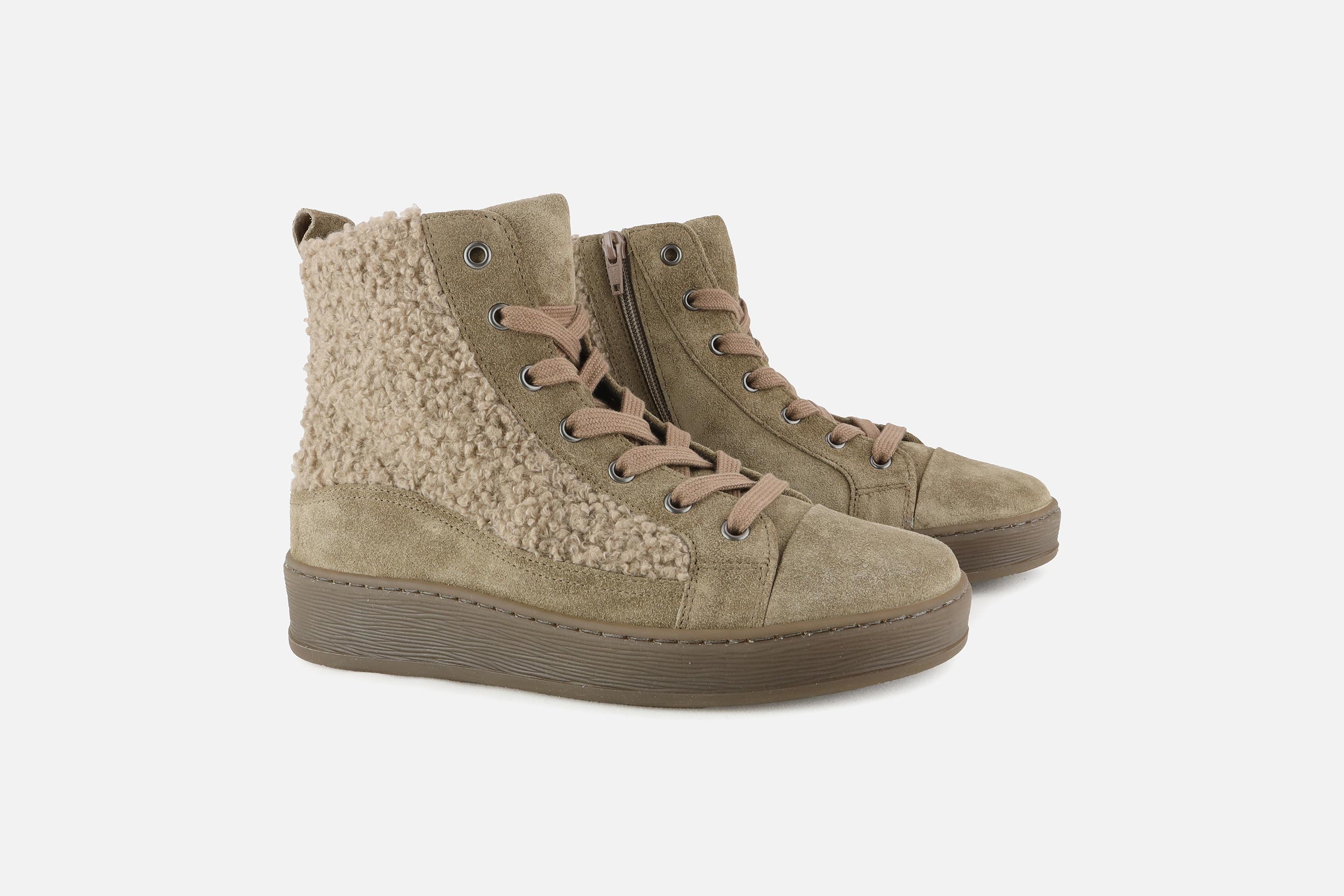 Daim-nubuck (cuir) + peau de mouton synthétique (textile)