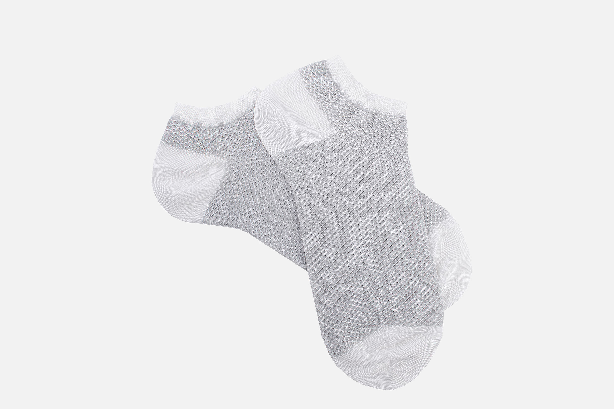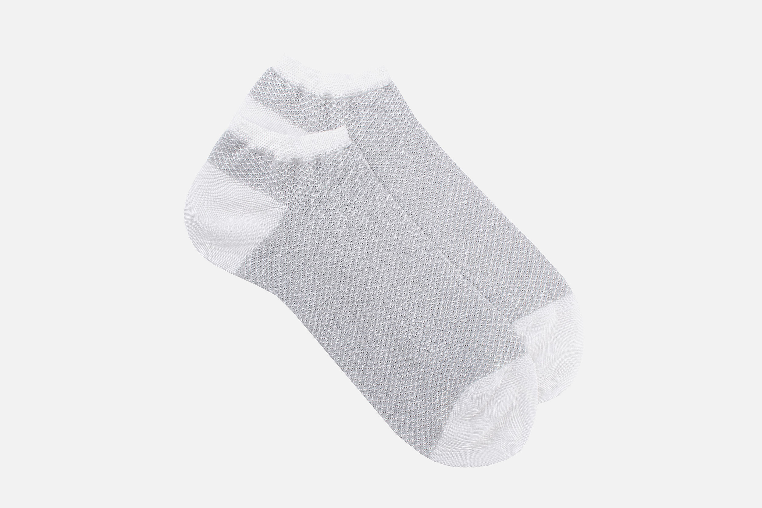 Chaussettes courtes pour femme, tricotées à partir d'une viscose, à la fois fine et soyeuse. Les pointes sont remaillées maille à maille pour plus de confort au niveau des orteils. Talons et pointes renforcés. Le motif losanges apporte une touche d'originalité à ces chaussettes de qualité, idéales portées avec des chaussures de ville ou des baskets. Fabriquées en Italie.