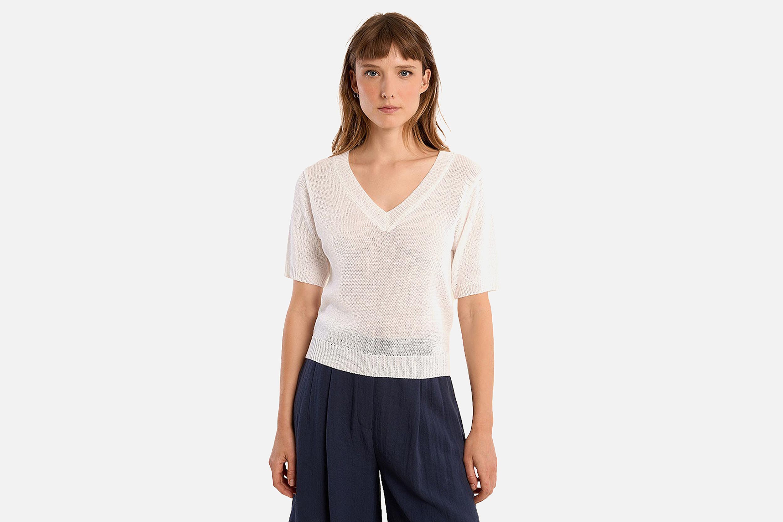 PULL MOLLY COL V MAILLE BLANC
