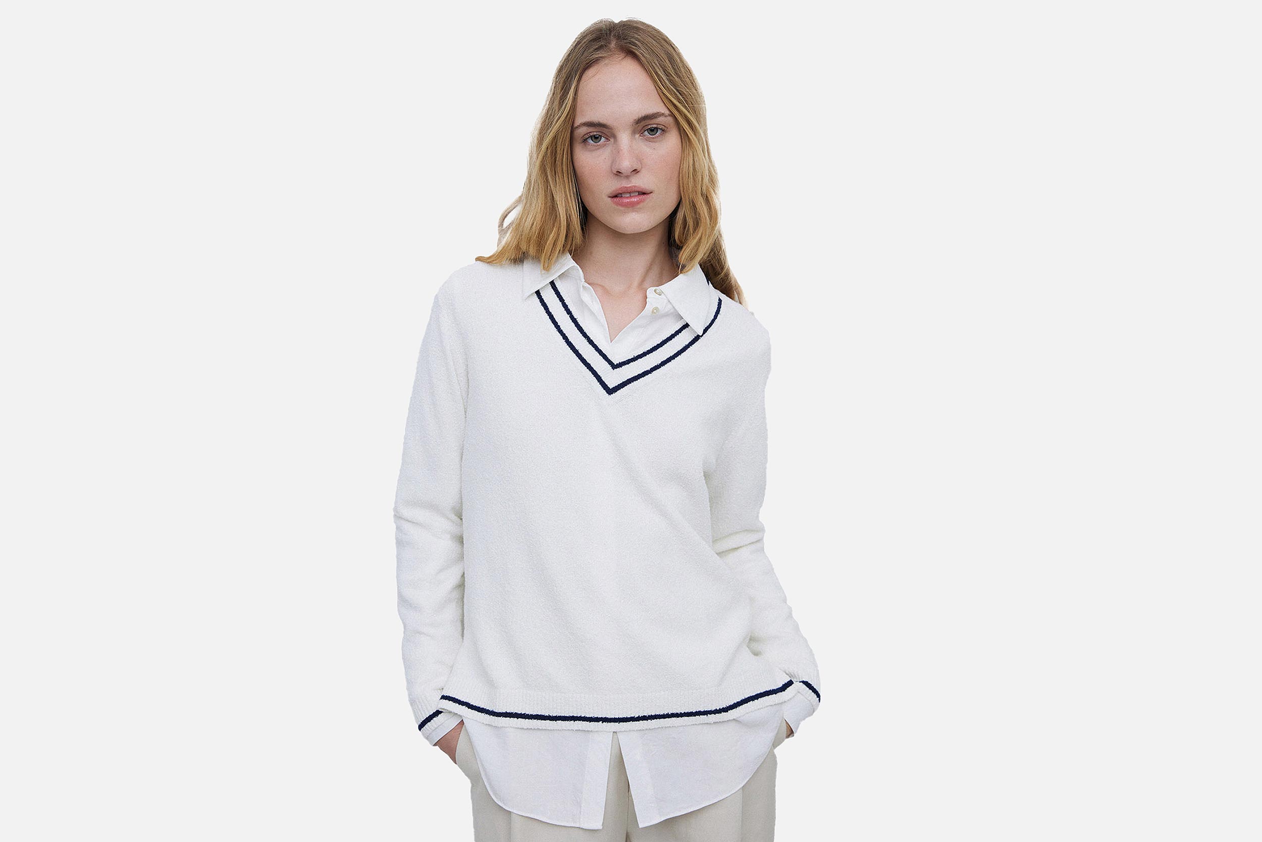PULL RIZZO V BLANC BLEU