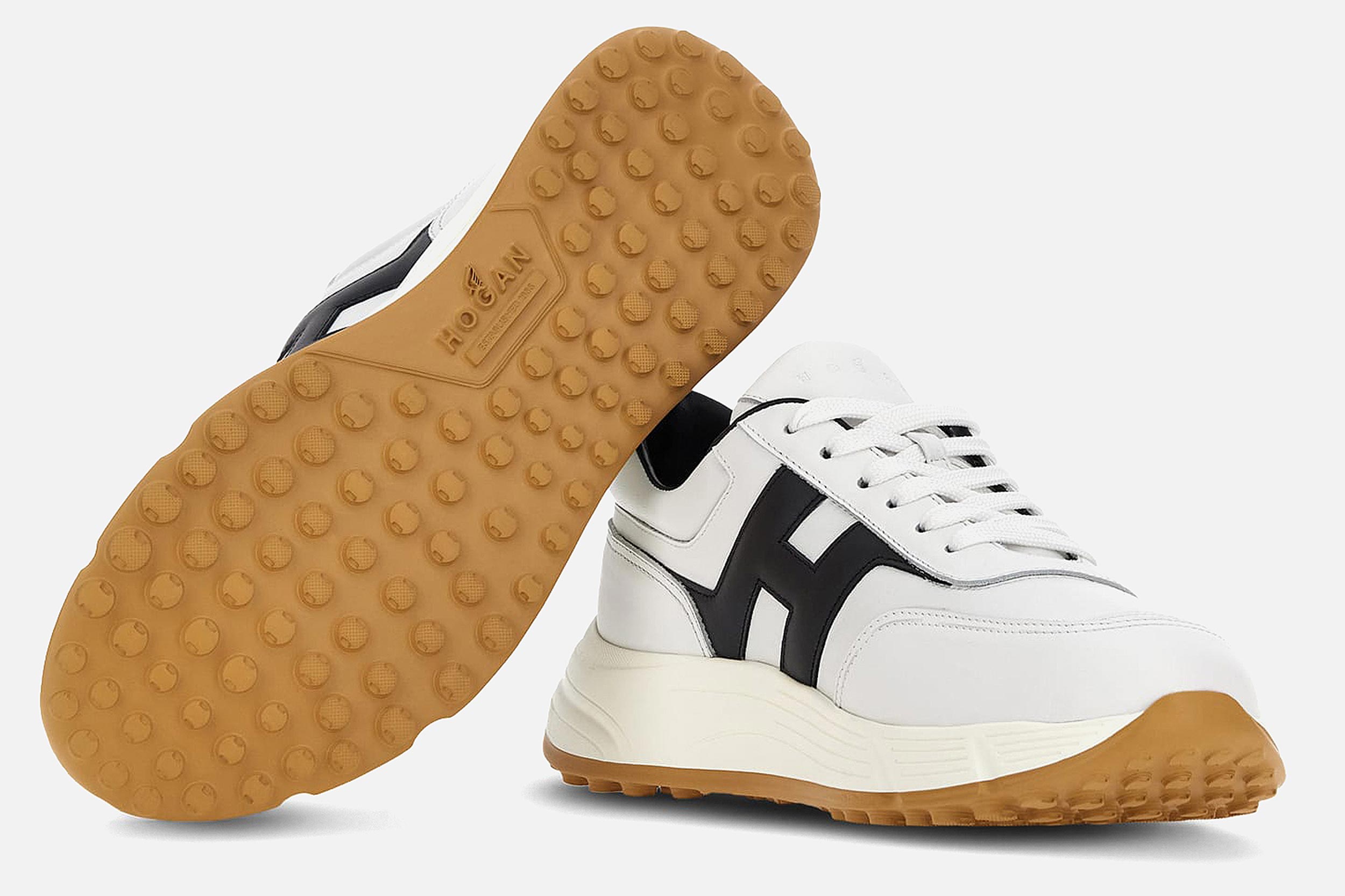 Créée en 1986, la chaussure Hogan se distingue, outre ses détails soignés, par le H emblématique qui apparaît sur ses lignes de sneakers urbaines et chic.