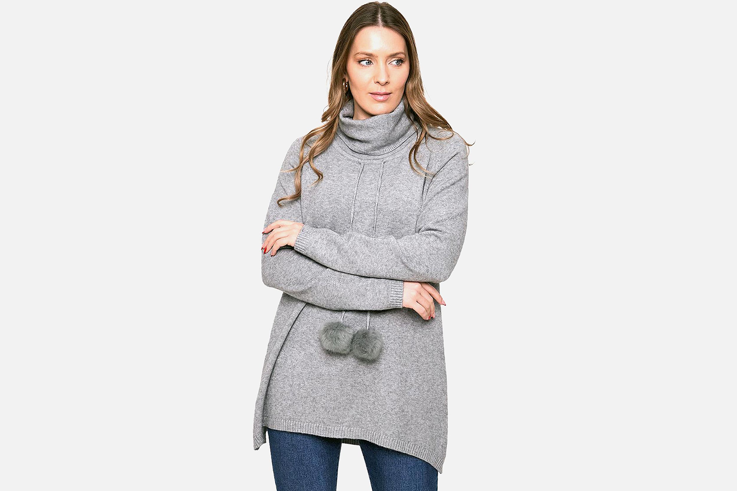 PULL POMPONS OVERSIZE GRIS