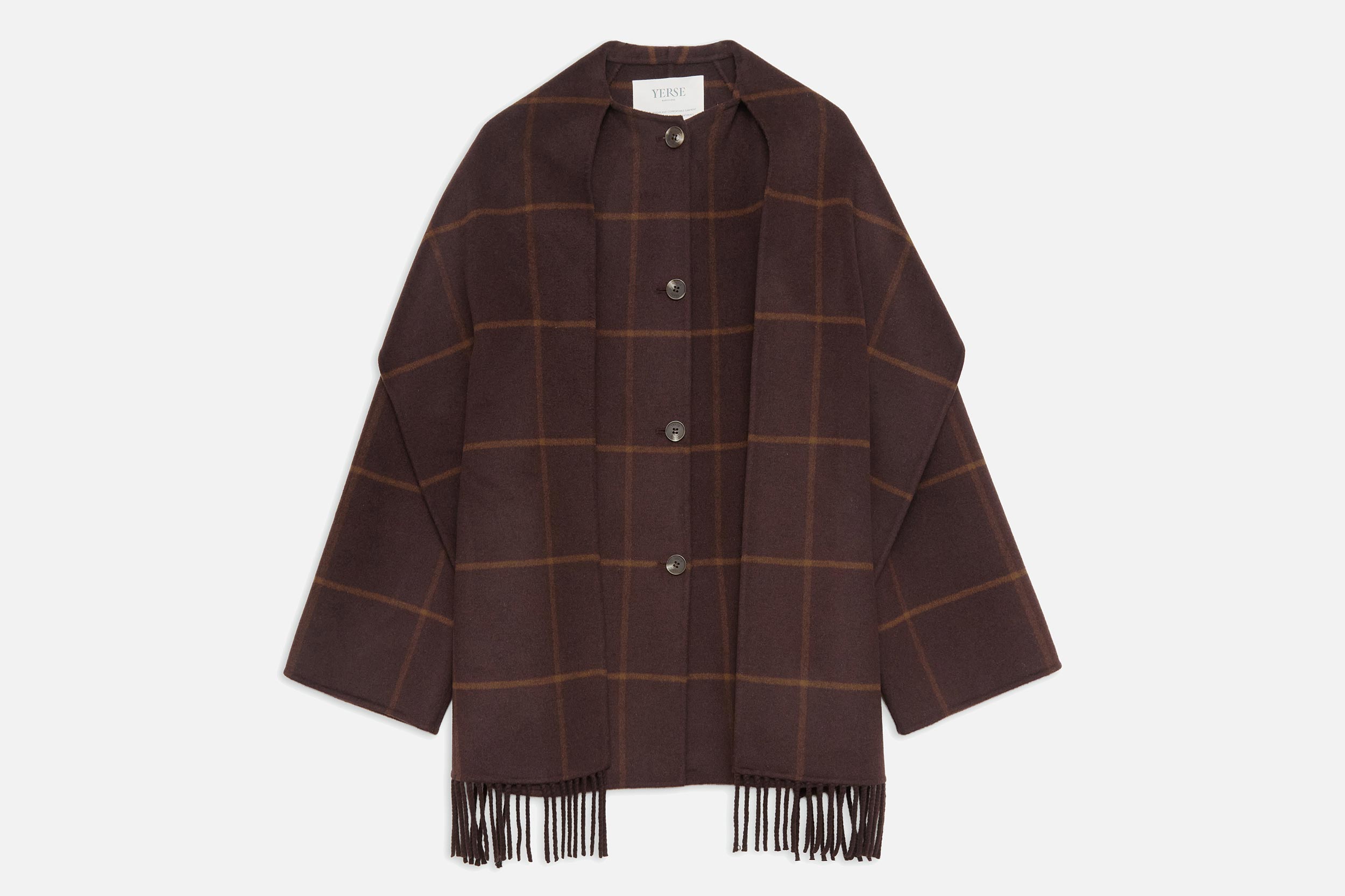 VESTE ECHARPE MARRON CARREAUX