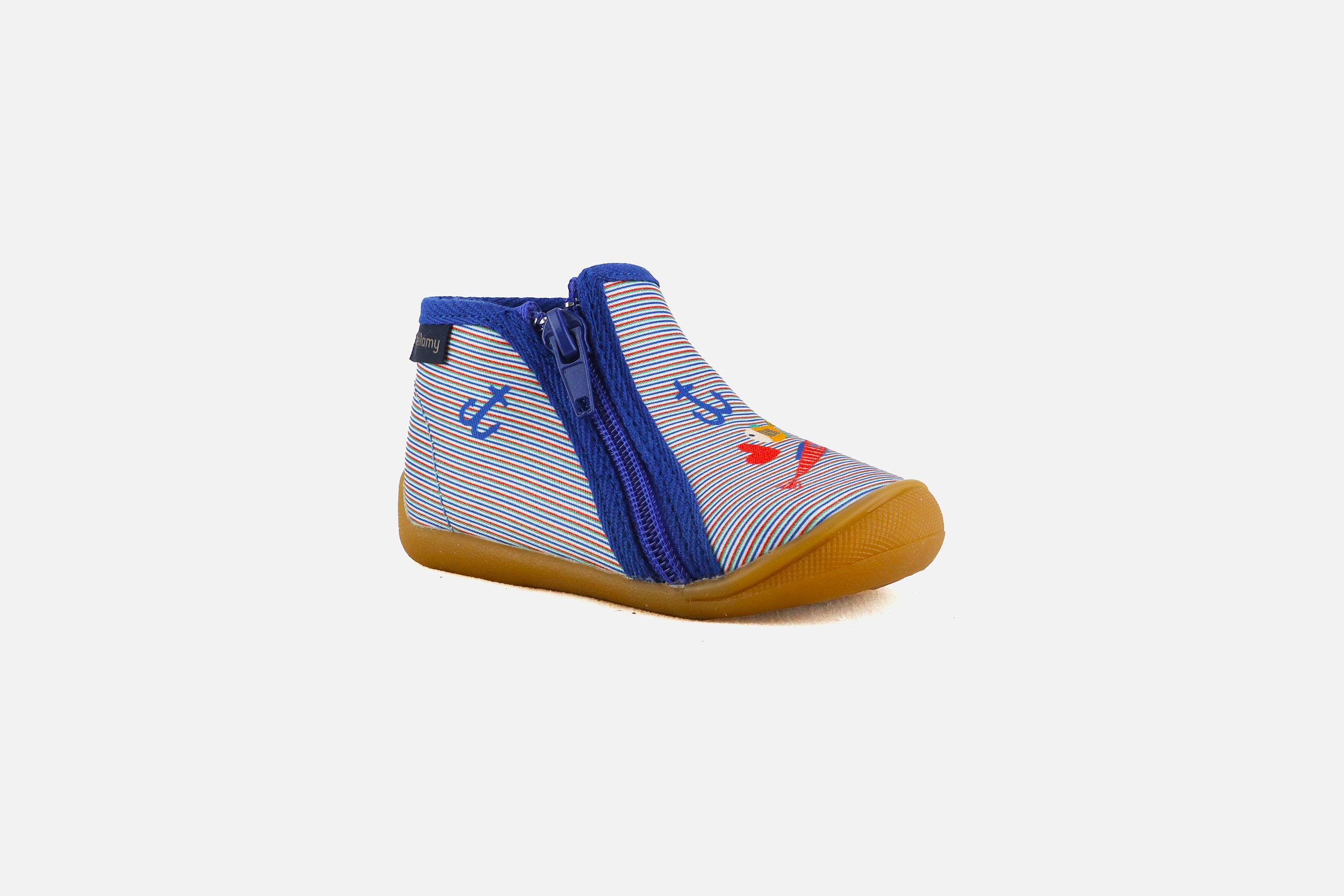 Bellamy manufactures well-designed kids’ shoes: the rubber toecaps strengthen shoes front to ensure them a greater longevity faced with kids’ adventures would live with them. A leather piped seam closed to the malleolus allows to hold on softly toddlers’ plump feet. Bellamy takes also a good care of kids’ feet indoors with its very large range of Bellamy slippers .